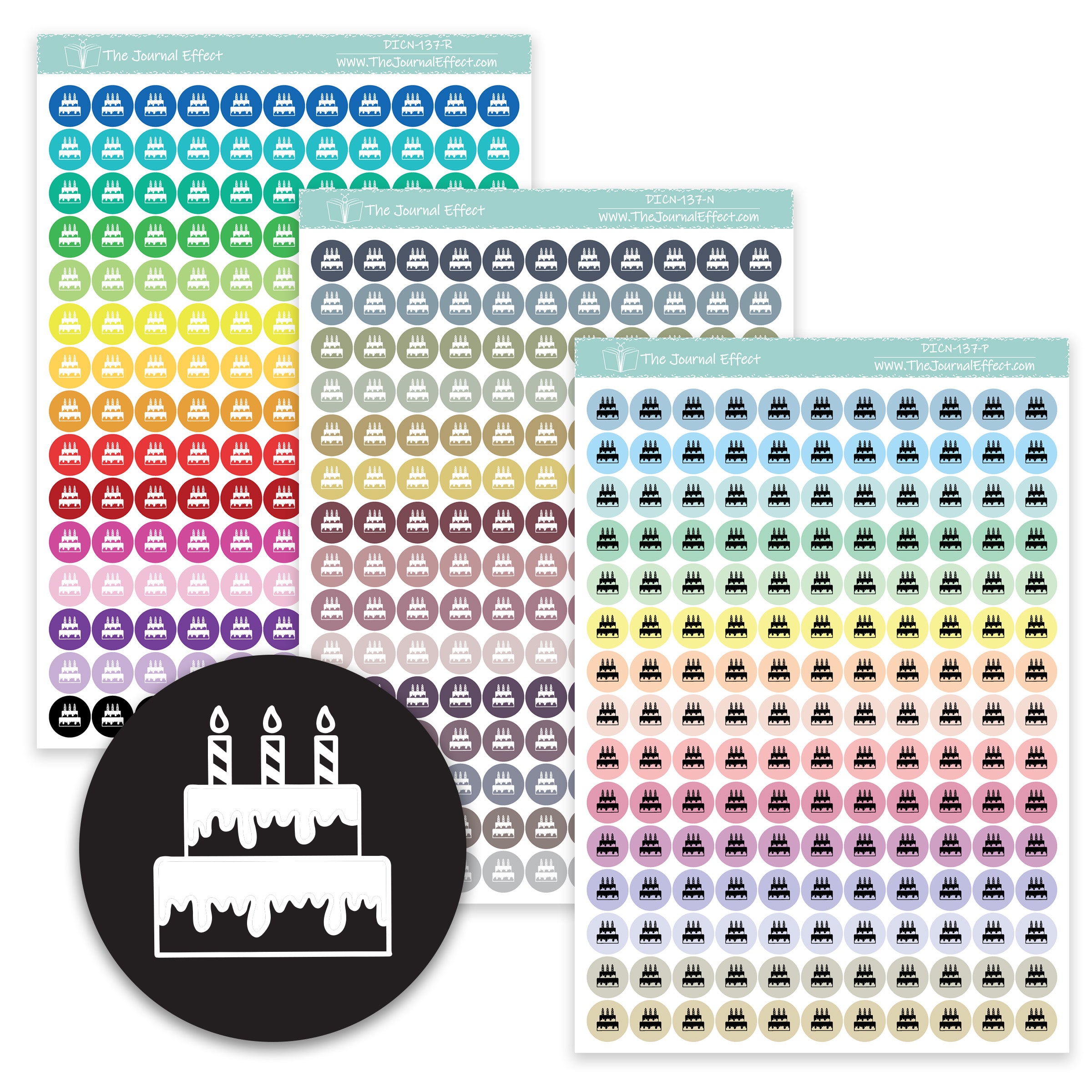 Cake / Birthday Tiny Dot Icon Stickers (.32")
