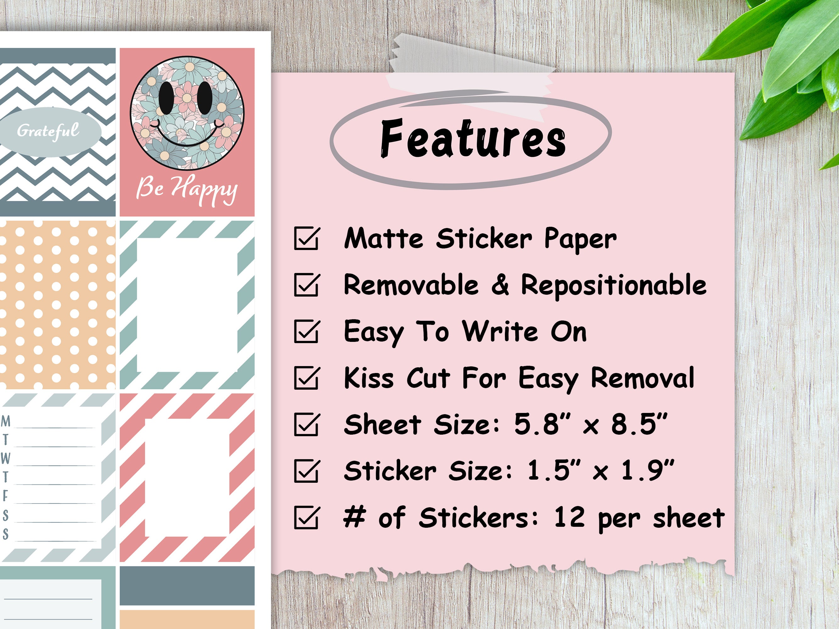 Decorate your planner with this fun and whimsical collection. Made to fit in most vertical planners, monthly calendars and more!