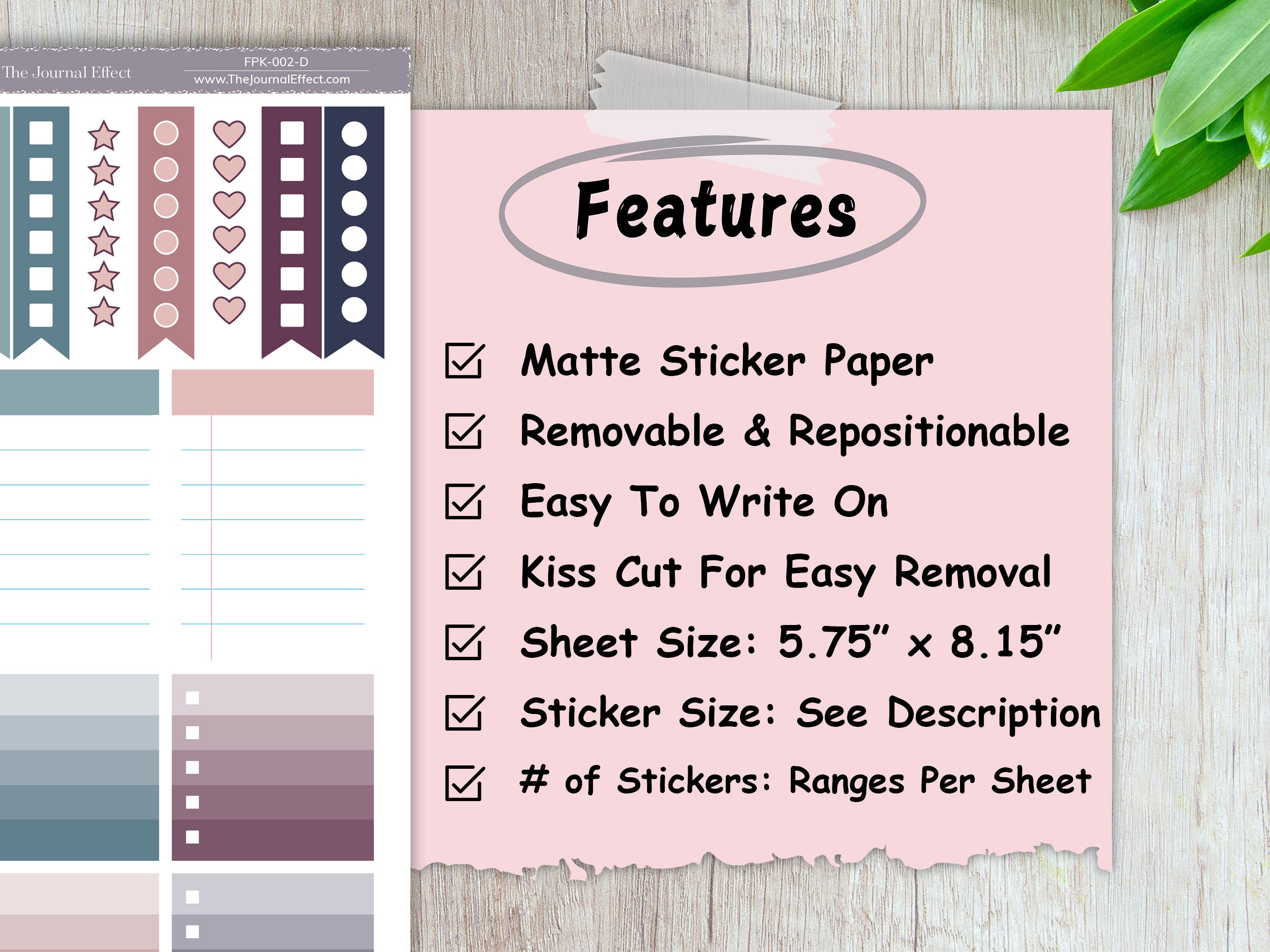 Each sheet is 5.75" x 8.15" and includes the following stickers: