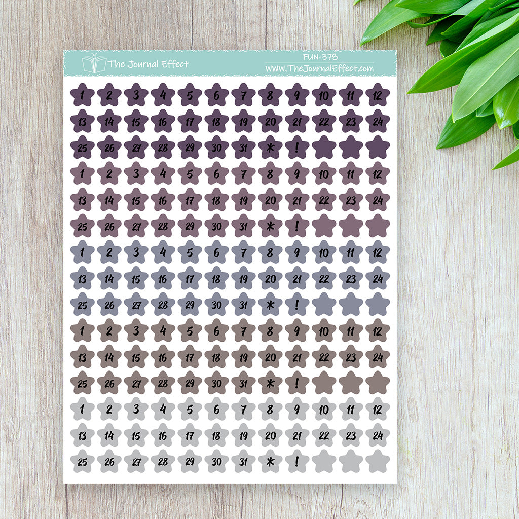Each sheet contains 5 sets of date dot stickers in a range of colors. These date dots are small enough to fit in your calendar or as weekday headers, but large enough to cover most dates in your dated planner.